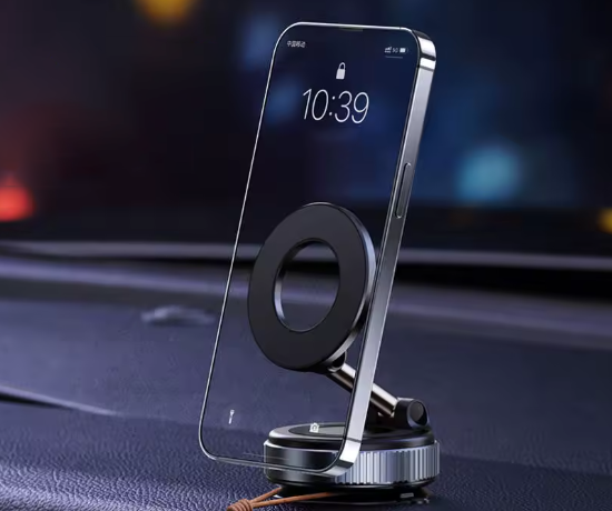 De VacuSmart Houder is uitgerust met een geavanceerde zuignap met vacuüm technologie. Met één simpele draai aan de knop bevestig je de houder stevig op ieder glad oppervlak, zoals de voorruit, het dashboard of achter op je laptop. Geen gedoe, gewoon vastklikken en gaan!
