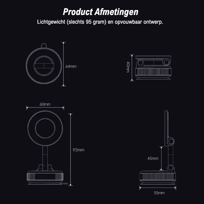 Lichtgewicht (slechts 95 gram) opvouwbaar ontwerp maakt deze houder perfect voor onderweg. Past moeiteloos in je tas of dashboardkastje. Handig voor op reis of als je de houder op meerdere plekken wilt gebruiken.